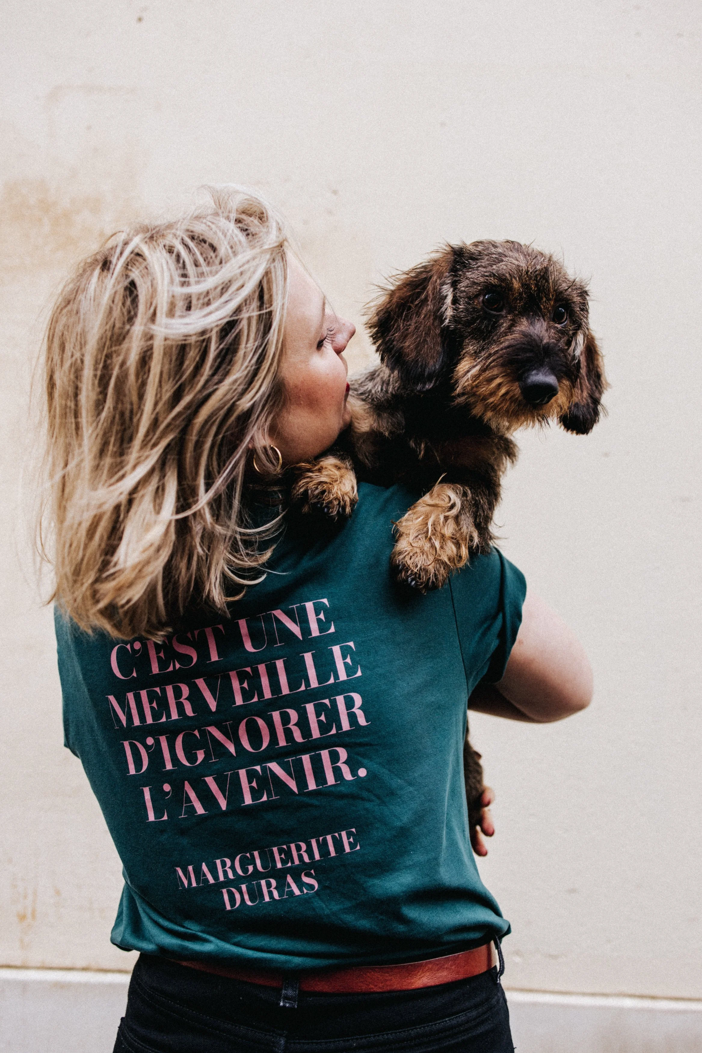 Dīcēs, c’est une marque qui redonne de la valeur aux mots. On inscrit des citations positives et joyeuses au dos de nos t-shirts, comme des porte-bonheur qu’on offre aux regards croisés dans la rue.
